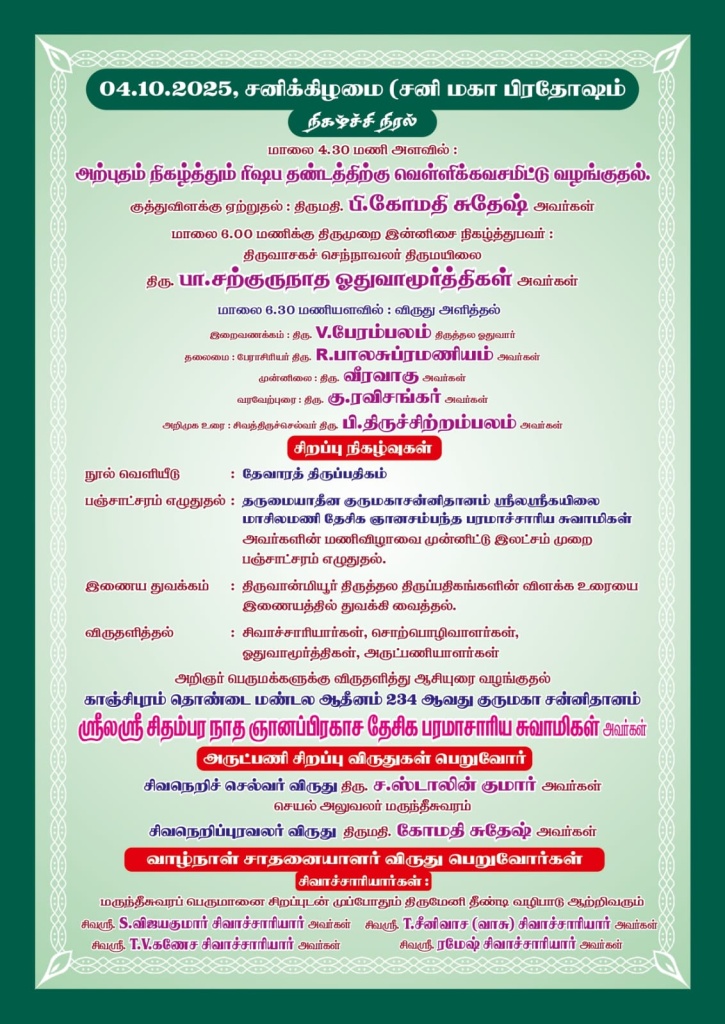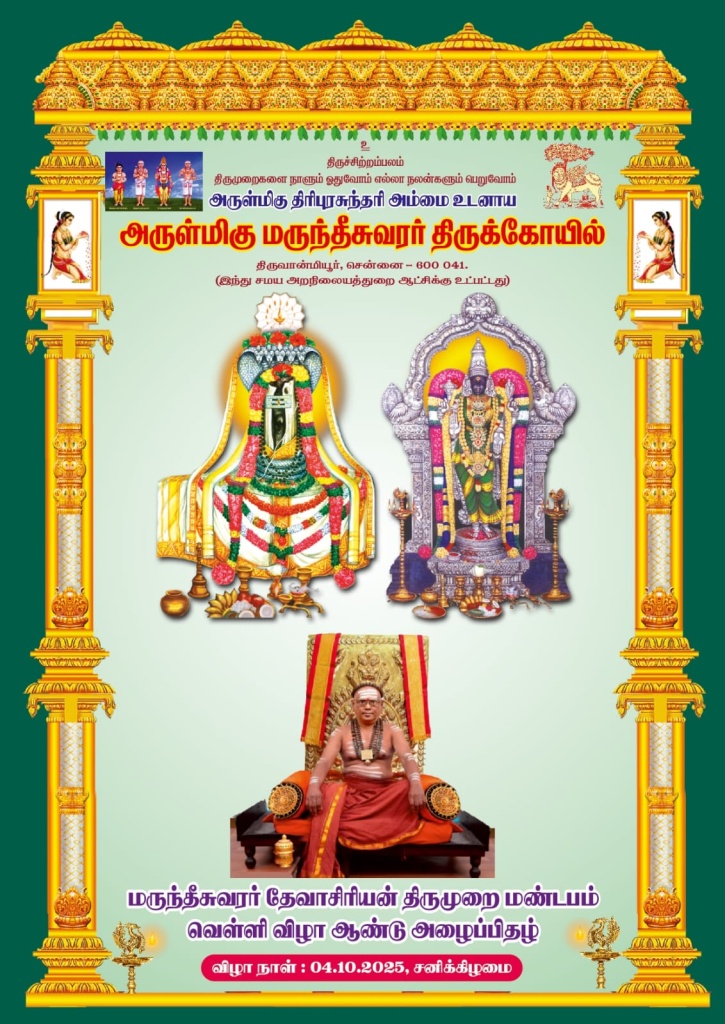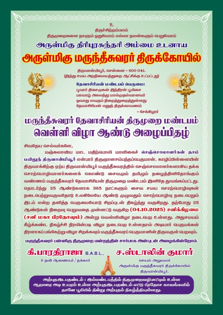 மருந்தீஸ்வரர் தேவாசிரியன் திருமுறை மண்டபம் வெள்ளி விழா – அருள்மிகு மருந்தீஸ்வரர் திருக்கோயில் திருவான்மியூர்