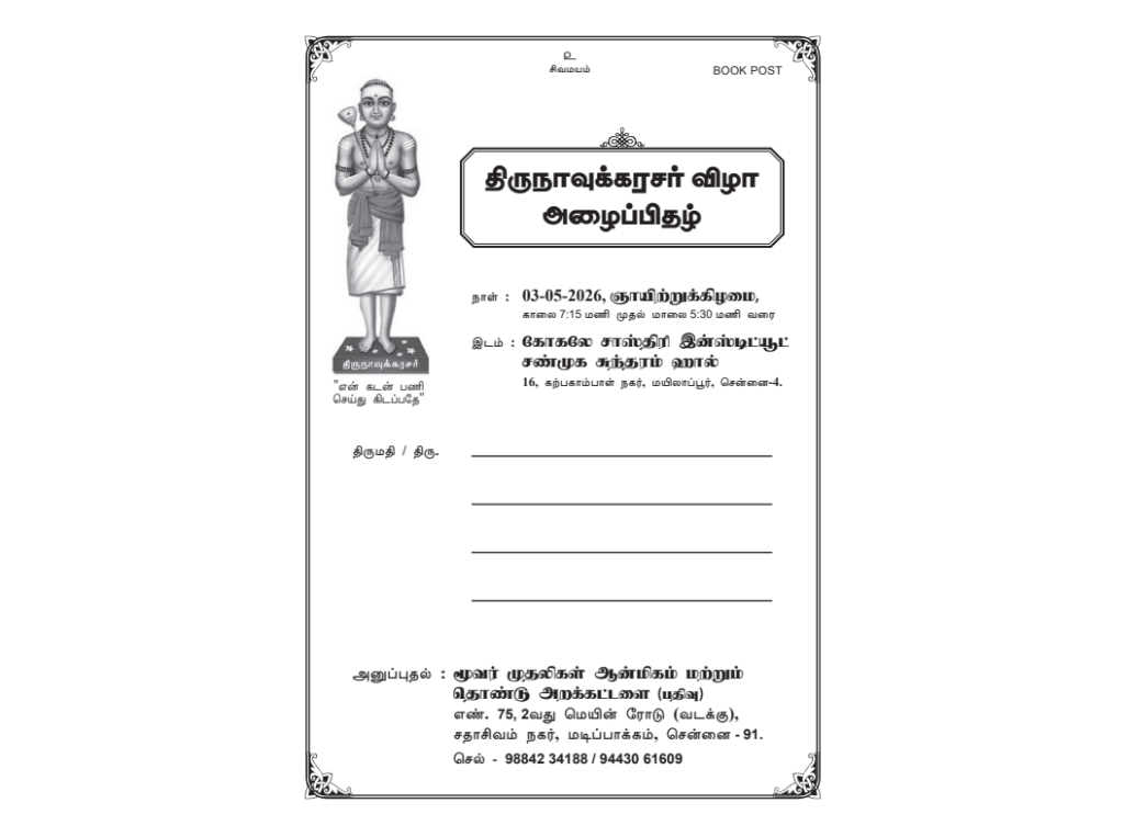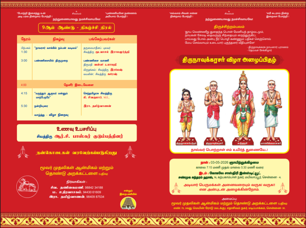 Home > Event > திருநாவுக்கரசர் விழா – அப்பரின் அருட்டமிழ் – சொற்பொழிவு