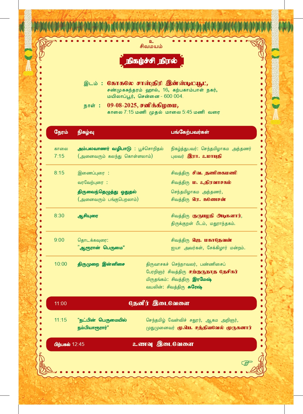 🕦 காலை 11:15 மணி – “நட்பின் பெருமையில் நம்பியாரூரார்”